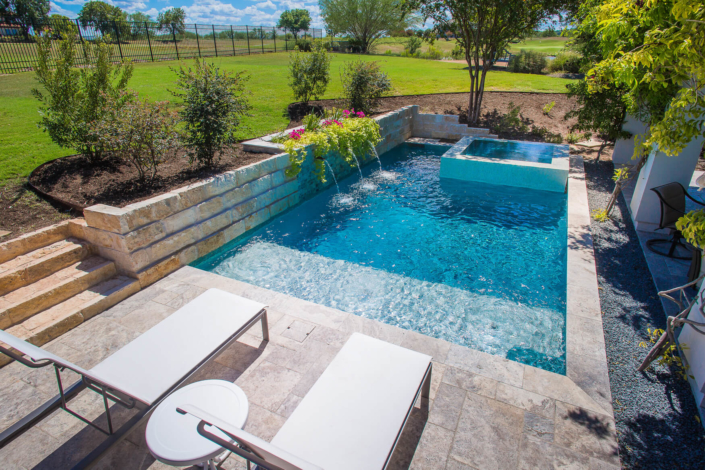 A Natural Boulder Pool with a small creek/brook. This pool was designed to imitate a natural spring formation common along our Texas Hill Country rivers, creeks, and streams.